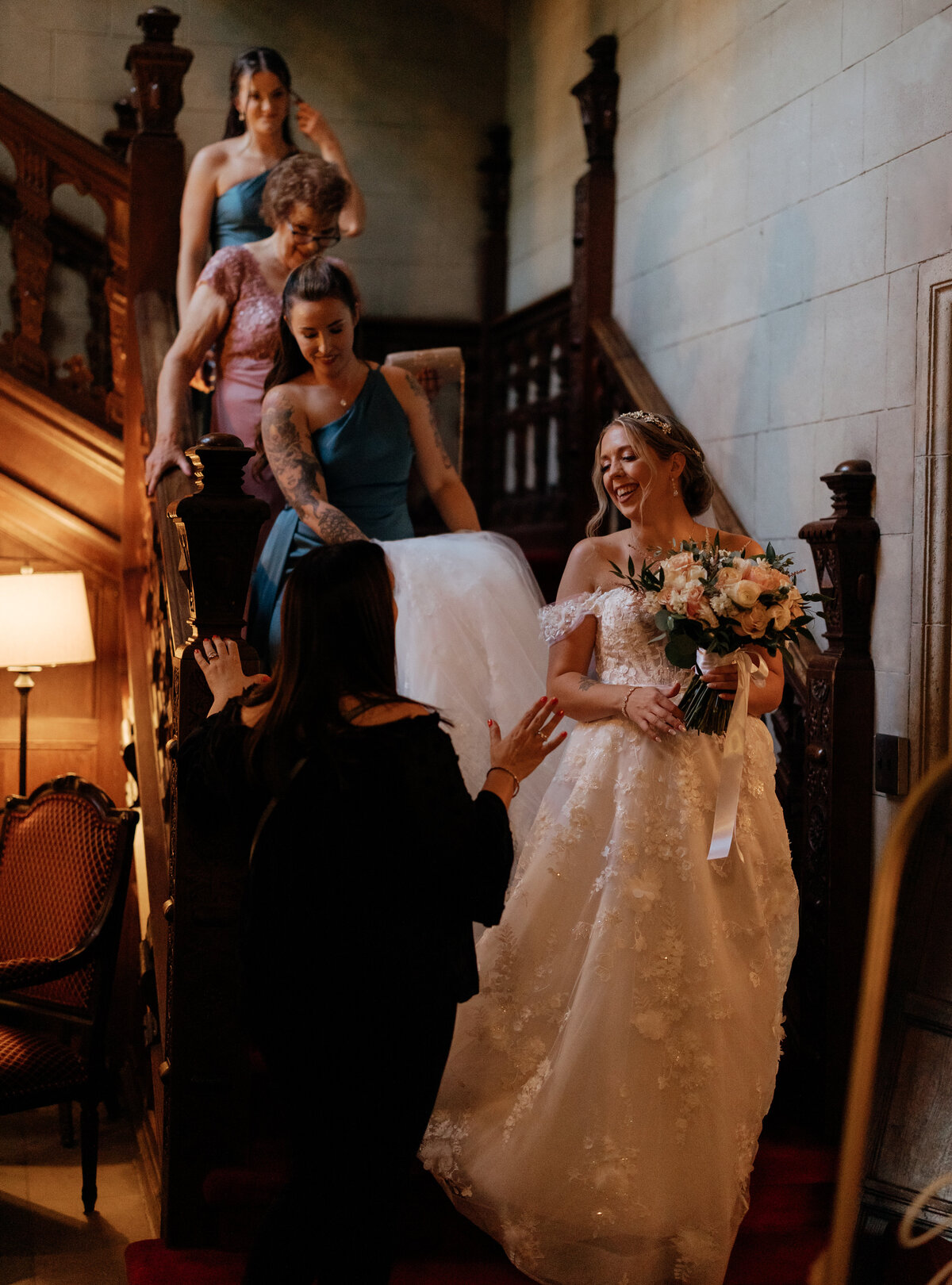 She is a documentary style wedding photographer, which means that for most of the day she's a fly on the wall, looking for all those candid moments that you'll treasure forever. During portraits she'll be a hands-on director, giving you movement based prompts that keep you focused on each other and result in candid looking, romantic and joyful photos.